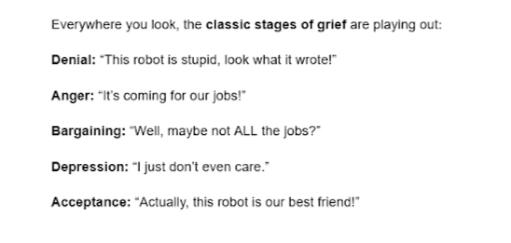 In this FREE guide, you will be getting all my knowledge (and knowledge I’ve borrowed from others)...To implement game-changing 'methods' that will revolutionise the marketing and business game.In this current climate with conflicting views and confusion around Ai I briefly mention the classic stages of grief Here’s a cheeky sample: